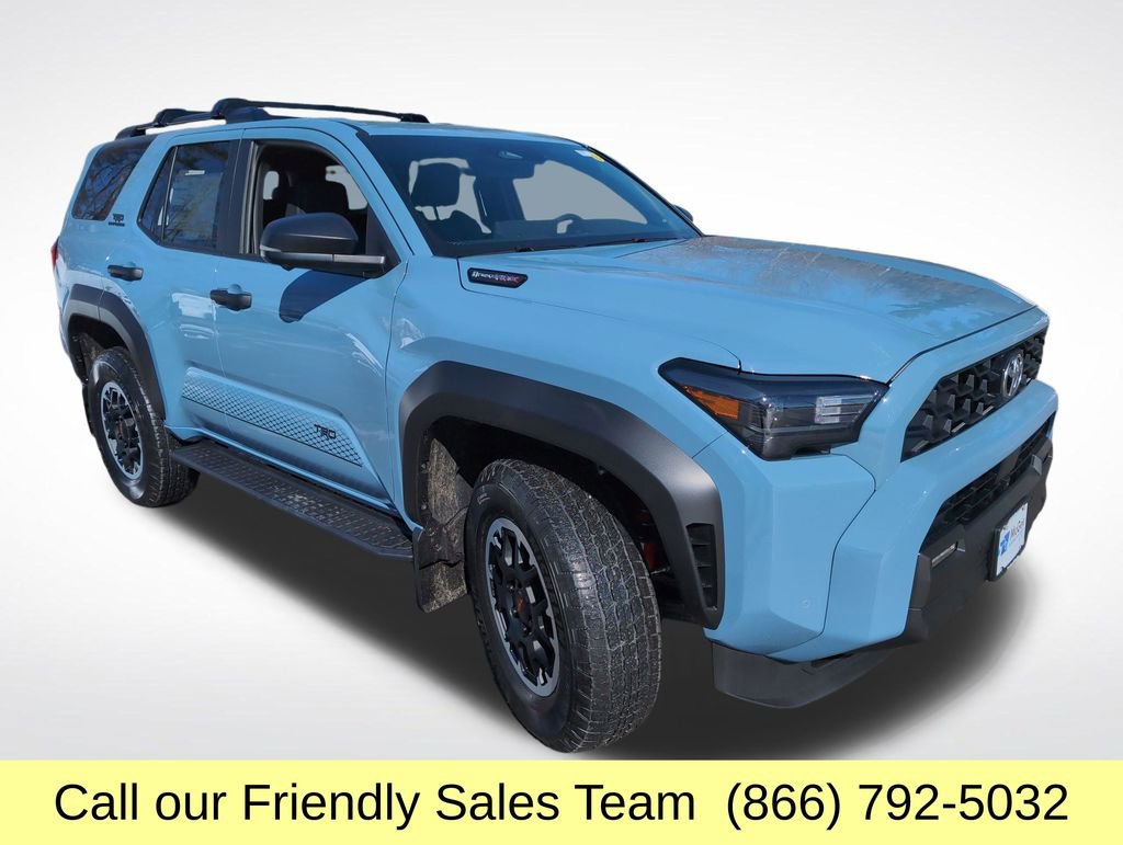 2026 Toyota 4Runner i-FORCE MAX Hybrid TRD Off Road Premium4WD Heritage Blue 2.4L 4-Cylinder 8-Speed AutomaticThe 2026 Toyota 4Runner TRD Off-Road Premium features a 278-hp 2.4-L turbo engine with 8-speed automatic transmission and part-time 4WD with 2-speed transfer case, off-road gear like locking rear differential, Multi-Terrain Select, and Crawl Control, a multimedia touchscreen with wireless Apple CarPlay & Android Auto, heated SofTex-trim front seats, dual-zone automatic climate control, LED headlights and fog lights, 17-inch or larger alloy wheels, Toyota Safety Sense 3.0 driver-assist suite, blind-spot monitor with rear-cross-traffic alert, Smart Key with push-button start, and rugged body-on-frame capability for both daily driving and trail performance., 2.4L 4-Cylinder, ABS brakes, Active Cruise Control, Alloy wheels, Electronic Stability Control, Front dual zone A/C, Heated door mirrors, Heated front seats, Illuminated entry, Low tire pressure warning, Navigation System, Remote keyless entry, Traction control.