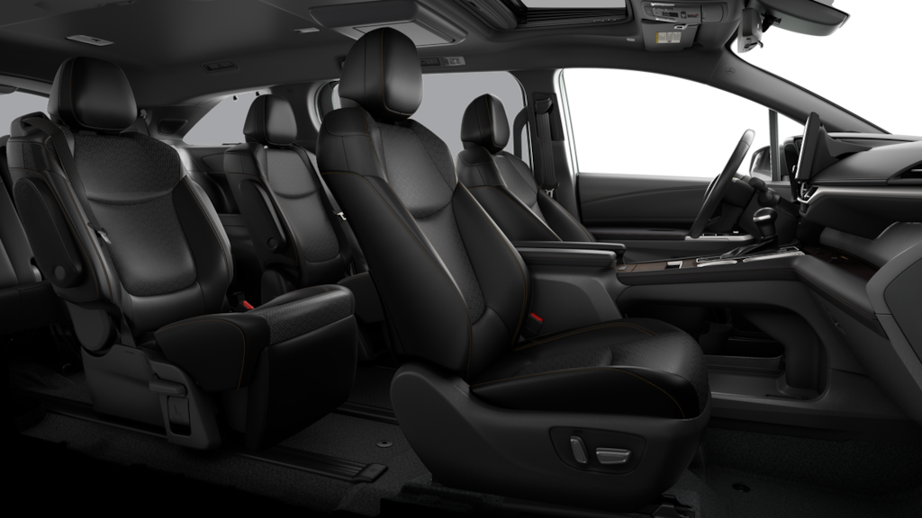 • 7-passenger seating with premium leather-trimmed second-row-seat captain's chairs with super-long-slide feature and ottomans.