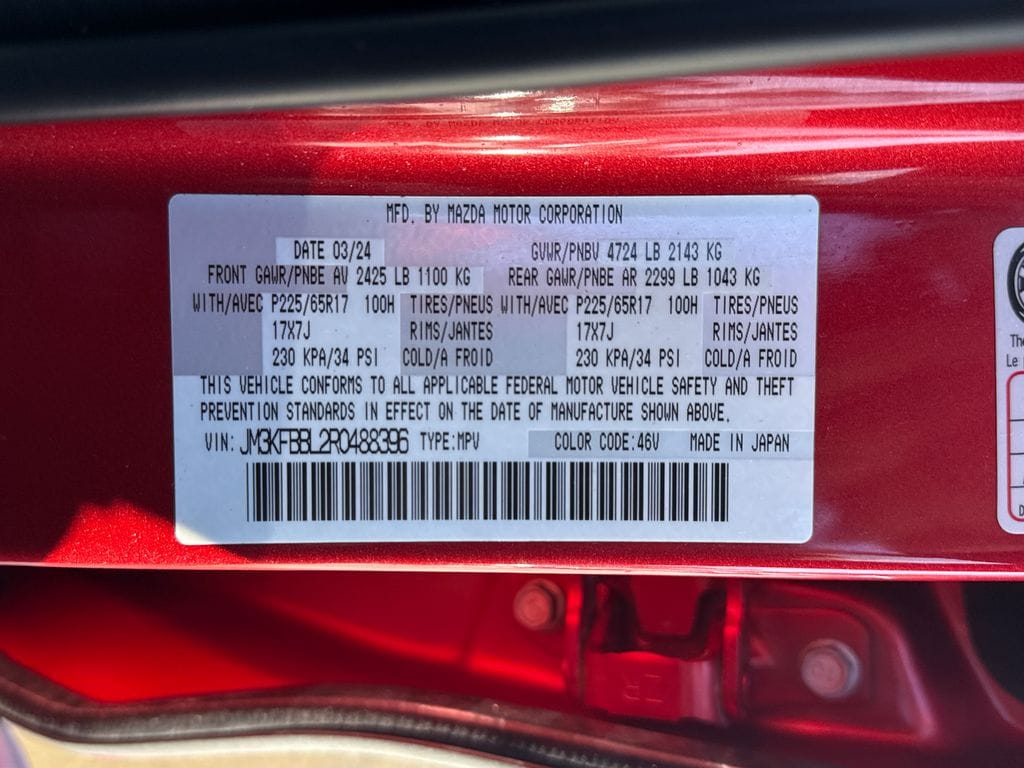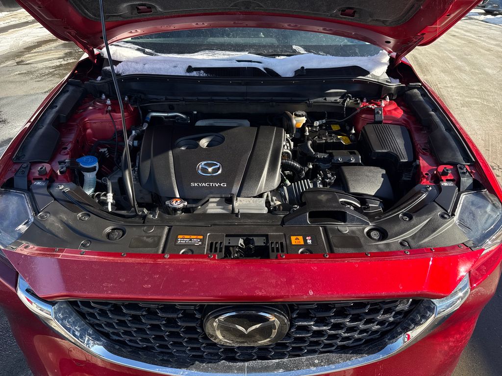 McGee Mazda Claremont is proud to present you with another True Market Priced Pre-Owned Vehicle. This 2024 Mazda CX-5 2.5 S Select Package is loaded with the following Factory Options: CX-5 2.5 S Select Package, 4D Sport Utility, 6-Speed Automatic, AWD, 4-Wheel Disc Brakes, ABS brakes, Dual front impact airbags, Dual front side impact airbags, Emergency communication system: MAZDA CONNECT, Exterior Parking Camera Rear, Front anti-roll bar, Front Bucket Seats, Heated Front Bucket Seats, Heated front seats, Pandora, Power driver seat, Power steering, Power windows, Remote keyless entry, Split folding rear seat, and Wheels: 17" x 7J Aluminum Alloy CX-5 2.5 S Select Package, 4D Sport Utility, 6-Speed Automatic, AWD, 4-Wheel Disc Brakes, ABS brakes, Dual front impact airbags, Dual front side impact airbags, Emergency communication system: MAZDA CONNECT, Exterior Parking Camera Rear, Front anti-roll bar, Front Bucket Seats, Heated Front Bucket Seats, Heated front seats, Pandora, Power driver seat, Power steering, Power windows, Remote keyless entry, Split folding rear seat, Wheels: 17" x 7J Aluminum Alloy, 4.624 Axle Ratio, 6 Speakers, Air Conditioning, All-Weather Floor Mats, Alloy wheels, AM/FM radio, AppLink/Apple CarPlay and Android Auto, Auto High-beam Headlights, Automatic temperature control, Brake assist, Bumpers: body-color, Cargo Net, Delay-off headlights, Driver door bin, Driver vanity mirror, E911 Automatic Emergency Notification, Electronic Stability Control, First Aid Kit, Four wheel independent suspension, Front Center Armrest w/Storage, Front dual zone A/C, Front reading lights, Fully automatic headlights, Illuminated entry, Infotainment System Voice Command, Leather Shift Knob, Leather steering wheel, Leatherette Seat Trim, Low tire pressure warning, Multifunction Commander Control, Occupant sensing airbag, Outside temperature display, Overhead airbag, Overhead console, Panic alarm, Passenger door bin, Passenger vanity mirror, Power door mirrors, Radio Broadcast Data System Program Information, Radio data system, Radio: AM/FM/HD Audio System, Rain sensing wipers, Rear anti-roll bar, Rear reading lights, Rear seat center armrest, Rear window defroster, Rear window wiper, Roadside Assistance Kit, SMS Text Msg Audio Delivery & Reply, Soul Red Crystal Metallic Paint, Speed control, Speed-sensing steering, Spoiler, Steering wheel mounted audio controls, Tachometer, Telescoping steering wheel, Tilt steering wheel, Traction control, Trip computer, Turn signal indicato
