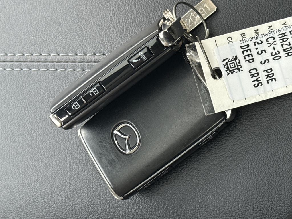 McGee Mazda Claremont is proud to present you with another True Market Priced Pre-Owned Vehicle. This 2025 Mazda CX-30 2.5 S Preferred Package is loaded with the following Factory Options: CX-30 2.5 S Preferred Package, 4D Sport Utility, 6-Speed Automatic, AWD, Greige W/Black Artificial Leather, 4-Wheel Disc Brakes, 6 Speakers, ABS brakes, AM/FM radio, Dual front impact airbags, Front Bucket Seats, Front Center Armrest, Heated Front Bucket Seats, Heated front seats, Memory seat, Power driver seat, Power steering, and Wheels: 18" x 7J Aluminum Alloy CX-30 2.5 S Preferred Package, 4D Sport Utility, 6-Speed Automatic, AWD, Greige W/Black Artificial Leather, 4-Wheel Disc Brakes, 6 Speakers, ABS brakes, AM/FM radio, Dual front impact airbags, Front Bucket Seats, Front Center Armrest, Heated Front Bucket Seats, Heated front seats, Memory seat, Power driver seat, Power steering, Wheels: 18" x 7J Aluminum Alloy, Air Conditioning, Alloy wheels, AppLink/Apple CarPlay and Android Auto, Auto High-beam Headlights, Automatic temperature control, Brake assist, Bumpers: body-color, Compass, Delay-off headlights, Driver door bin, Driver vanity mirror, Dual front side impact airbags, Electronic Stability Control, Emergency communication system: Mazda Connected Services (3-year trial subscription included), Exterior Parking Camera Rear, Front anti-roll bar, Front dual zone A/C, Front reading lights, Front wheel independent suspension, Fully automatic headlights, Heated door mirrors, Illuminated entry, Knee airbag, Leather Shift Knob, Leather steering wheel, Leatherette Seat Trim, Low tire pressure warning, MAZDA CONNECT Infotainment System, Occupant sensing airbag, Outside temperature display, Overhead airbag, Overhead console, Panic alarm, Passenger door bin, Passenger vanity mirror, Power door mirrors, Power moonroof, Power windows, Radio data system, Radio: AM/FM Audio System, Rain sensing wipers, Rear seat center armrest, Rear side impact airbag, Rear window defroster, Rear window wiper, Remote keyless entry, Speed control, Speed-sensing steering, Split folding rear seat, Spoiler, Steering wheel mounted audio controls, Tachometer, Telescoping steering wheel, Tilt steering wheel, Traction control, Trip computer, Turn signal indicator mirrors, Variably intermittent wipers, and Wheel Locks!!