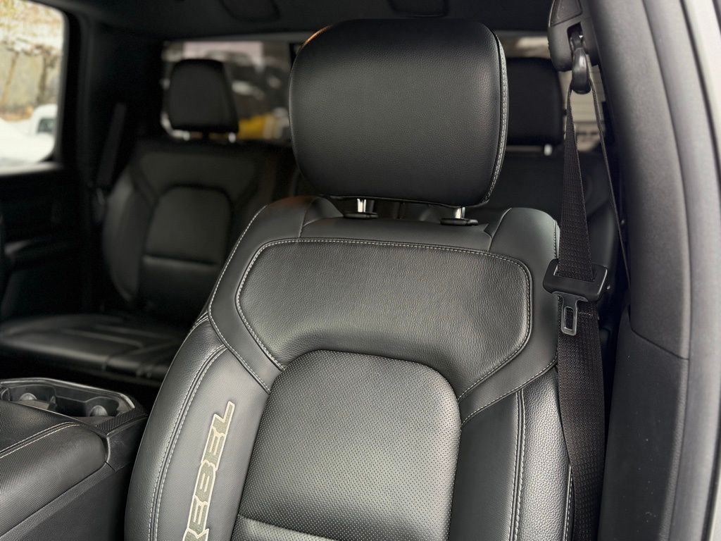 McGee Ford of Montpelier is proud to present you with another True Market Priced Pre-Owned Vehicle. This 2021 Ram 1500 Rebel is loaded with the following Factory Options: Quick Order Package 25W Rebel, Rebel 12 (1-Yr SiriusXM Guardian Trial, 12" Touchscreen Display, 4 Way Front Headrests, 4G LTE Wi-Fi Hot Spot, 5-Year SiriusXM Traffic Service, 5-Year SiriusXM Travel Link Service, Apple CarPlay, Bucket Seats, Disassociated Touchscreen Display, For Details, Visit DriveUconnect.com, For More Info, Call 800-643-2112, Front Seat Back Map Pockets, Full Length Upgraded Floor Console, Google Android Auto, GPS Antenna Input, GPS Navigation, harman/kardon 19 Speaker Premium Sound, HD Radio, Heated Front Seats, Heated Steering Wheel, Integrated Center Stack Radio, Integrated Voice Command w/Bluetooth, LED Footwell Lighting, Lux Leather Trimmed Bucket Seats, Power 4-Way Driver Lumbar Adjust, Power 4-Way Passenger Lumbar Adjust, Power 8-Way Driver & Passenger Seats, Radio: Uconnect 12 w/Navigation, Rear 60/40 Folding Seat, SiriusXM Radio Service, SiriusXM Satellite Radio, SiriusXM Traffic Plus, SiriusXM Travel Link, SiriusXM w/360L, and USB Host Flip), Rebel Level 2 Equipment Group (115V Auxiliary Rear Power Outlet, Air Conditioning ATC w/Dual Zone Control, Auto-Dimming Exterior Driver Mirror, Black Premium Power Mirrors, Body Color Door Handles, Exterior Mirrors Courtesy Lamps, Exterior Mirrors w/Supplemental Signals, Foam Bottle Insert (Door Trim Panel), Media Hub w/2 Charge Only USBs, ParkSense Front/Rear Park Assist w/Stop, Power Adjustable Pedals, Power-Folding Mirrors, Radio: Uconnect 4 w/8.4" Display, Rain Sensitive Windshield Wipers, Rear Dome w/On/Off Switch Lamp, Rear Underseat Compartment Storage, Rear Window Defroster, Remote Proximity Keyless Entry, Security Alarm, Sun Visors w/Illuminated Vanity Mirrors, and Universal Garage Door Opener), 3.92 Rear Axle Ratio, 4-Wheel Disc Brakes, 48V Belt Starter Generator, 6 Speakers, ABS brakes, Air Conditioning, Alloy wheels, AM/FM radio: SiriusXM, Auto-dimming Rear-View mirror, Black Exterior Mirrors, Blind Spot & Cross Path Detection, Brake assist, Cloth/Vinyl Low Back Bucket Seats, Compass, Delay-off headlights, Driver door bin, Dual front impact airbags, Dual front side impact airbags, Electric Shift-On-Demand Transfer Case, Electronic Stability Control, Front anti-roll bar, Front Bucket Seats, Front Center Armrest w/Storage, Front fog lights, Front License Plate Bracket, Front reading lights, Front wheel independent suspension, Fully automatic headlights, Heated door mirrors, Illuminated entry, Instrument Cluster Theme 5 - Rebel 2, Leather steering wheel, Low tire pressure warning, Occupant sensing airbag, Outside temperature display, Overhead airbag, Overhead console, Panic alarm, ParkView Rear Back-Up Camera, Passenger door bin, Passenger vanity mirror, Power door mirrors, Power driver seat, Power steering, Power windows, Radio data system, Radio: Uconnect 3 w/5" Display, Rear anti-roll bar, Rear seat center armrest, Rear step bumper, Rear Wheelhouse Liners, Remote keyless entry, Remote Start System, Speed control, Split folding rear seat, Steering wheel mounted audio controls, Tachometer, Telescoping steering wheel, Tilt steering wheel, Traction control, Trip computer, Variably intermittent wipers, Voltmeter, and Wheels: 18" x 8.0" Painted Mid-Gloss Black!!